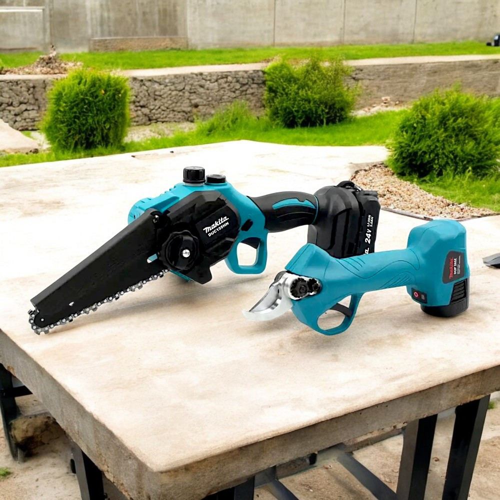 Набір 2в1 від Makita, що містить пилу та секатор, являє собою ідеальне рішення для оптимізації процесу роботи в саду або на дачі.Чаг інструмент у наборі вирізняється високою міцністю й надійністю, забезпечуючи довговічність і стабільність у роботі навіть у разі інтенсивного використання.